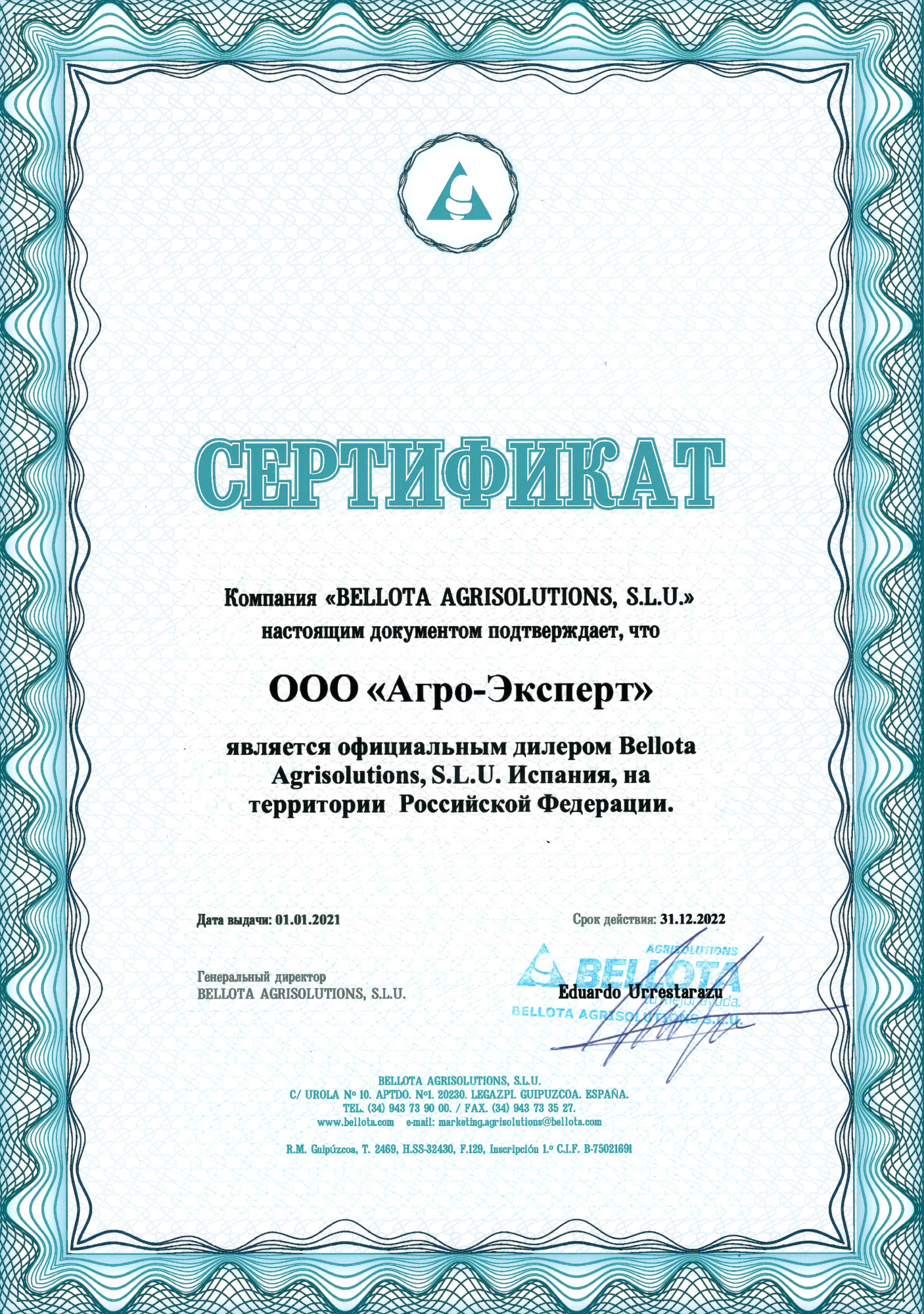 Вот уже 6 лет подряд АГРО-ЭКСПЕРТ ООО подтверждает статус официального дилера компании Bellota в России.